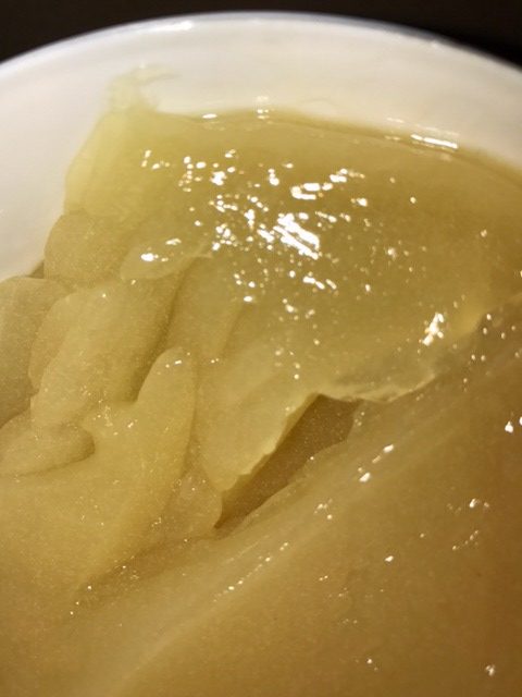 Беспримесная жидкость от светлого до темного янтарного цвета.