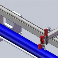 Станок состоит из сварной основы, на которой установлены три оси перемещения: ось X параллельно трубе, ось Y и ось Z, вертикальная.