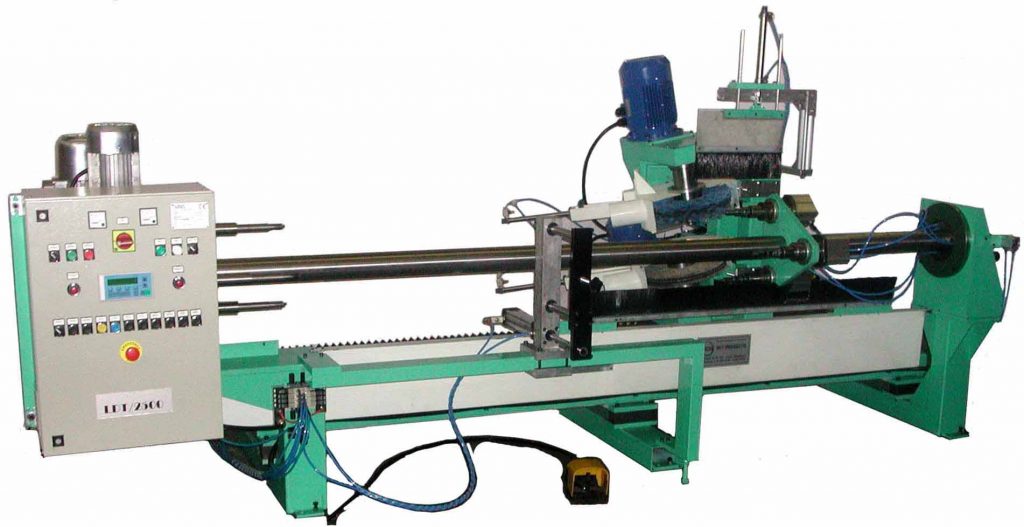 Первая обрабатываемая заготовка закреплена между двумя вращающимися центрами (установленными на 3-позиционном делительном столе). При каждом повороте делительного стола заготовка (находится в положении нагрузки) устанавливается в первое рабочее положение (черновая обработка), где она начинает вращаться. Заготовка от первого рабочего положения перемещается во второе (чистовая обработка), в то время как заготовка, установленная во второй позиции, поворачивается в положение нагрузки, затем она поднимается и заменяется новой обрабатываемой заготовкой. Каждая рабочая группа оборудована двумя направляющими: по одной из них полировочная щетка подается к заготовке, по второй происходит продольное перемещение щеток в двух направлениях. Таймер управляет рабочим циклом, а управление вращением заготовок осуществляется посредством двигателя с регулируемой частотой вращения.