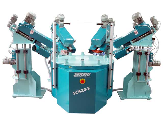 Cтандартная версия имеет 4 моторизованные колонны; электрические моторы 3.3 Kw, можно использовать щётки (полировальные или шлифовальные диски) или пластинчатые абразивные колеса наружного диаметра 350 мм.