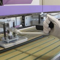 • С LDM2500 вы перемещаете стол с помощью мотора и используете длинную ленту вместе с несколькими инструментами для обработки необходимых мест.