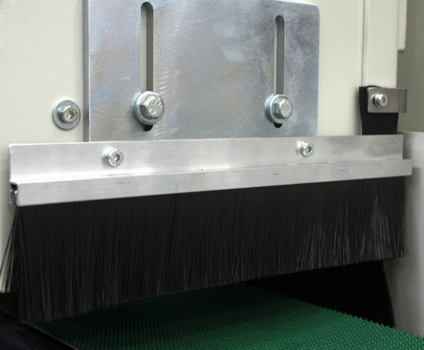 Станок позволяет обрабатывать до 220мм шириной с несколькими комбинациями голов с лентами и щетками.