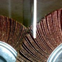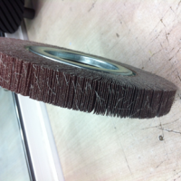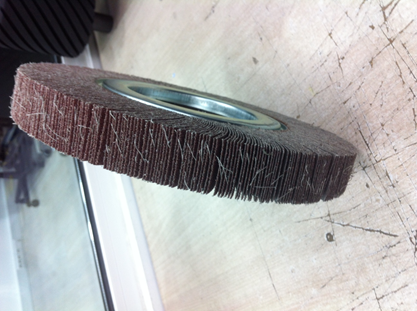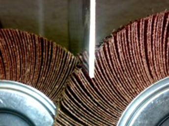 Обработка осуществляется двумя лепестковыми абразивными барабанами