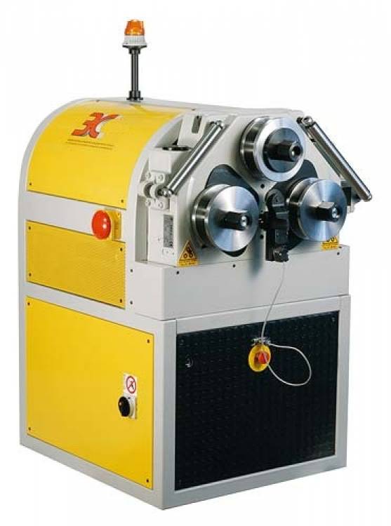 Кроме того, контролирует и автоматически управляет скоростями движения роликов, позволяя реализовывать малые радиусы гиба и увеличивая скорость при осуществлении широких радиусов. Может работать и в многопроходном режиме на одном радиусе. Станок оснащен фотоэлектрическим датчиком начала цикла и автоматического считывая положения профиля.