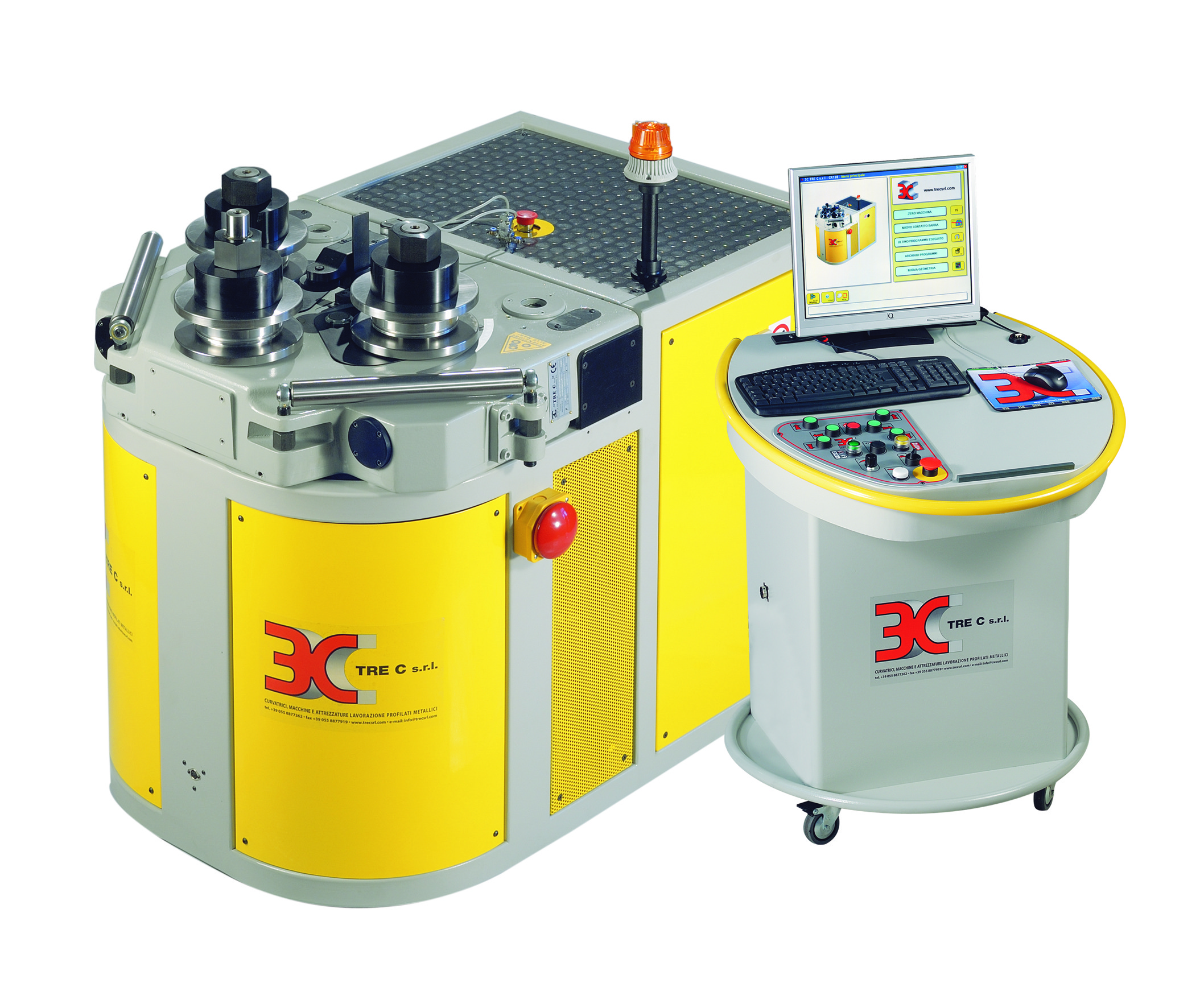 Станок укомплектован ЧПУ CNC120. Программа дает возможность работать в много проходном режиме на одном радиусе или в однопроходном с возможностью программирования до 12 различных радиусов на одном профиле, управляя и автоматически просчитывая помимо 500 скоростей позиционирования гибочного ролика, как на входе так и на выходе, позволят выполнять сложные геометрии, такие, как низкие арки, многоугольники и эллипсы. Программное обеспечение обновляется и дополняется. ЧПУ также может быть отключено, если необходимо проводить гибку вручную.