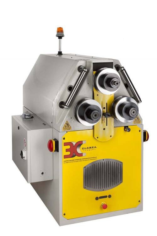 Гидравлический гибочный станок предназначен для стальных и алюминиевых профилей. Станина выполнена из чугуна. Три вращающихся вала выполнены из закалённой отшлифованной стали, установлены на конические подшипники и приводятся в движение с помощью редукторного двигателя и зубчатых колёс из закалённой стали. Машина может быть снабжена пятью различными блоками управления. Два боковых вала приводятся в движение при помощи гидравлических цилиндров. Кроме того, имеется одна скорость вращения в версии CR230/1МRH, две в модели с ЧПУ CR238МRCNCH и CR230МRHA, 150 скоростей в модели CR238МRIM и CR230МRHAIM. Панель управления работает от тока низкого напряжения, как это предусмотрено нормативами и установлена на отдельной передвижной консоли.