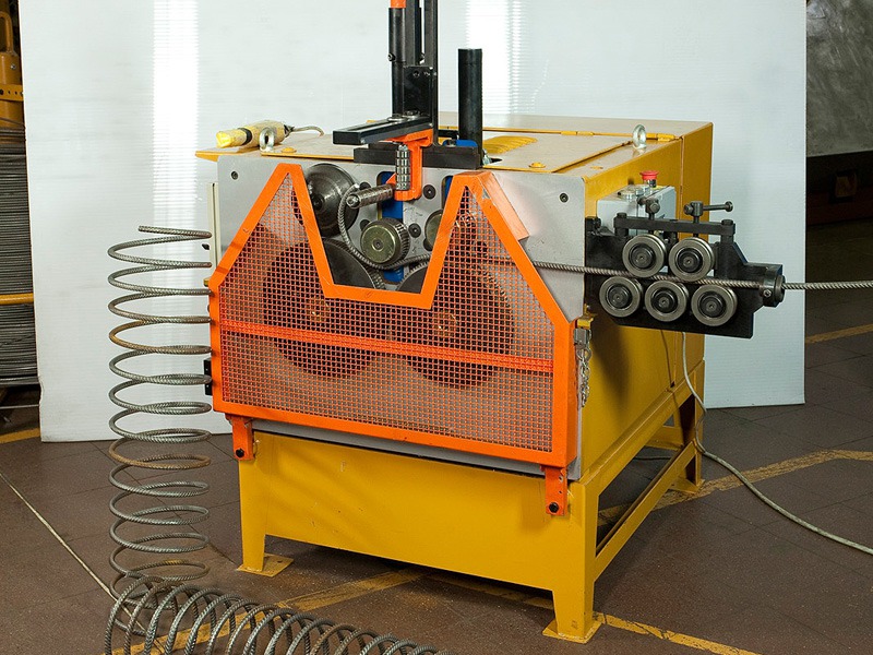 Станок для гибки спирали, который может обрабатывать сталь в рулоне диаметром до 16 мм и в прутке диаметром до 20 мм.